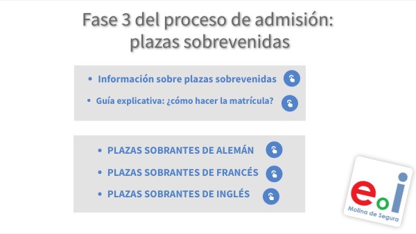 Fase 3 del proceso de admisión: plazas sobrevenidas
