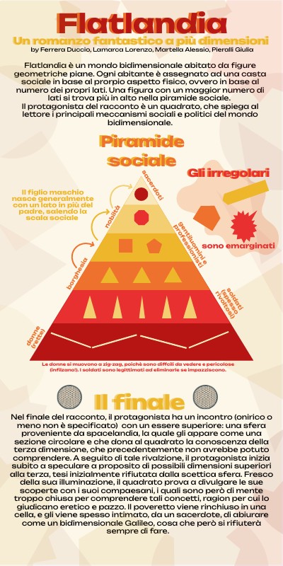 Flatlandia è un mondo bidimensionale abitato da figure geometriche piane. Ogni abitante è assegnato ad una casta sociale in base al prorpio aspetto fisico, ovvero in base al numero dei propri lati. Una figura con un maggior numero di lati si trova più in alto nella piramide sociale. Il protagonista del racconto è un quadrato, che spiega al lettore i principali meccanismi sociali e politici del mondo bidimensionale.