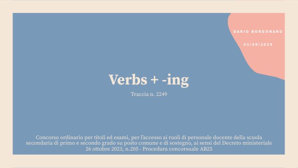 - Once the verbs have been identified, the teacher briefly explains the existence of this -ing form and its general use, making a comparison with the Italian gerundio.