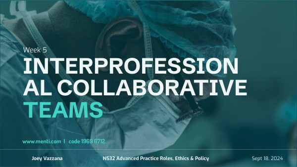Mitchell, P., Wynia, M., Golden, R., McNBellis, B., Okun, S., Webb, C. E.,... Von Kohorn, I. (2012). Core principles and values of effective team-based health care. Discussion Paper. Washington, DC: Institute of Medicine. Retrieved from https://nam.edu/wp-content/uploads/2015/06/VSRT-Team-Based-Care-Principles-Values.pdf.