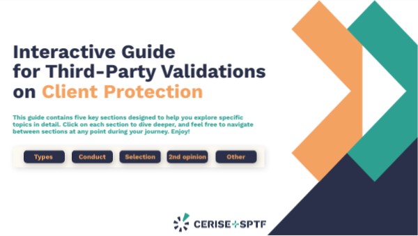 Cerise+SPTF recommends that third-party validation reports be made publicly available on the third-party organization’s website and/or the FSP’s website, or through any accessible communication channel as appropriate.It can also be reported by the FSP to Cerise+SPTF so that it appears online on the list of institutions on the CP Pathway.