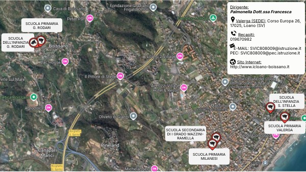 Dirigente: Palmonella Dott.ssa Francesca Valerga (SEDE): Corso Europa 26, 17025, Loano (SV) Recapiti: 019670982 E-MAIL: SVIC808009@istruzione.it PEC: SVIC808009@pec.istruzione.it Sito Internet: http://www.icloano-boissano.it