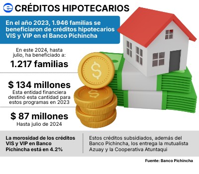 Estos créditos subsidiados, además del Banco Pichincha, los entrega la mutualista Azuay y la Cooperativa Atuntaqui