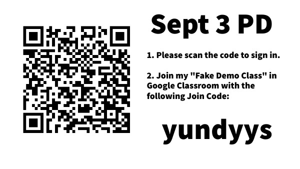 1. Please scan the code to sign in. 2. Join my "Fake Demo Class" in Google Classroom with the following Join Code: