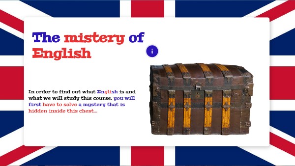 In order to find out what English is and what we will study this course, you will first have to solve a mystery that is hidden inside this chest...