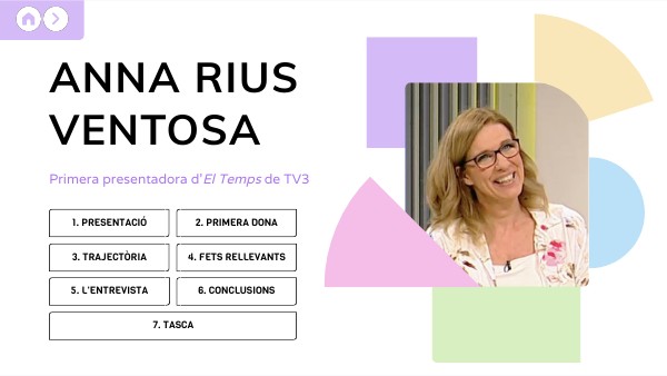 "Quina roba em posaré avui?" Aquesta és una de les preguntes que ens fem més sovint els éssers humans. Sovint, just abans de sortir de casa. El temps meteorològic influeix en les activitats humanes ja que condiciona i limita totes aquelles que fem a l'exterior de casa, a l'aire lliure: El fet d'agafar paraigua, o no; d'anar a peu o amb bici a l'institut, o amb algun altre vehicle, practicar esport a l'aire lliure, etc. La gran dona que coneixerem avui és, des de fa molts anys, experta en respondre aquest tipus de pregunta. Us atreviu a conèixer-la? Som-hi! Ella és la gran ANNA RIUS VENTOSA!