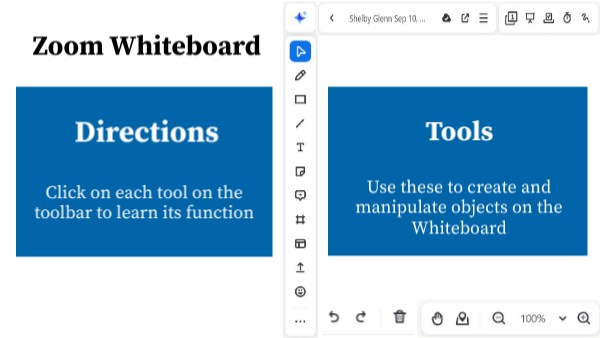 This is the title of your Whiteboard. It will default to your name and the date and time it was created. Click in this box to rename your Whiteboard.