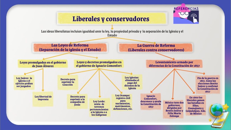 Las ideas liberalistas incluian igualdad ante la ley, la propiedad privada y la separación de la Iglesia y el Estado