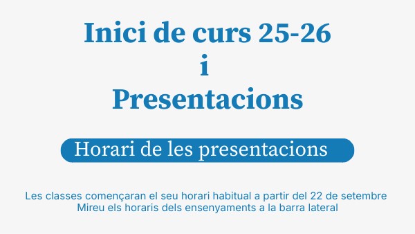 Les classes començaran el seu horari habitual a partir del 22 de setembre Mireu els horaris dels ensenyaments a la barra lateral