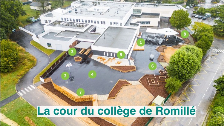 75 arbres ont été plantés sur l'ensemble de la cour. La végétalisation permet de faire baisser la température en cas de forte chaleur et rend la cour plus agréable.