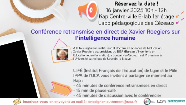 L’IFÉ (Institut Français de l’Education) de Lyon et le Pôle IPPA de l'UCA vous invitent à partager ce moment : - 45 minutes de conférence retransmises en direct- 15 min de pause-café- 45 minutes de discussion avec le conférencier