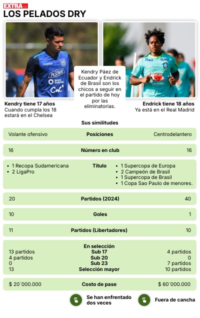 Kendry Páez de Ecuador y Endrick de Brasil son los chicos a seguir en el partido de hoy por las eliminatorias.