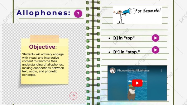 Students will actively engage with visual and interactive content to reinforce their understanding of allophones, making connections between text, audio, and phonetic concepts.