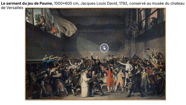 Le serment du jeu de Paume, 1000*600 cm, Jacques Louis David, 1792, conservé au musée du chateau de Versailles