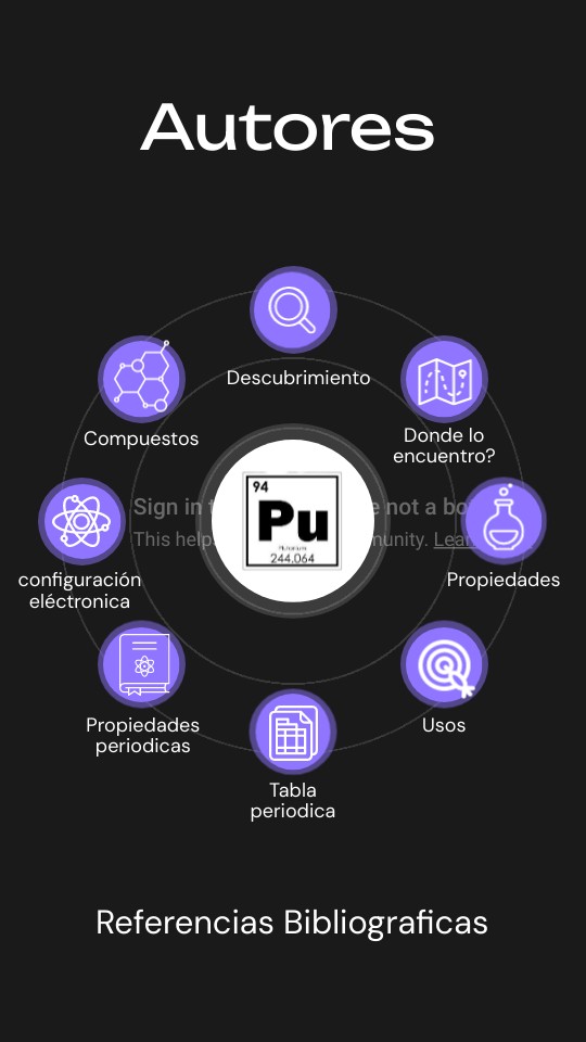 Resumen de Salud Pública: Plutonio (Plutonium). (2021, January 26). Cdc.gov. https://www.atsdr.cdc.gov/es/phs/es_phs143.html Plutonio. (2019, July 21). Clickmica. https://clickmica.fundaciondescubre.es/conoce/elementos-quimicos/plutonio/ Plutonio. (n.d.). Kle.cz. Retrieved October 11, 2024, from https://pt.kle.cz/es_ES/plutonio.html Plutonio (Pu) Propiedades químicas y efectos sobre la salud y el medio ambiente. (s/f). Lenntech.es. https://www.lenntech.es/periodica/elementos/pu.htm Plutonio (Pu) - Tabla Periódica. (s/f). www.periodictable.one. https://www.periodictable.one/es/elemento/94