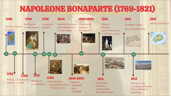 Napoleone nacque nel 1769 ad Ajaccio, in Corsica, da una famiglia della piccola nobiltà. Dedicatosi fin da ragazzo alla carriera delle armi, terminò la sua formazione nella scuola militare di Parigi. Nel 1785 fu nominato sottotenente di artiglieria.