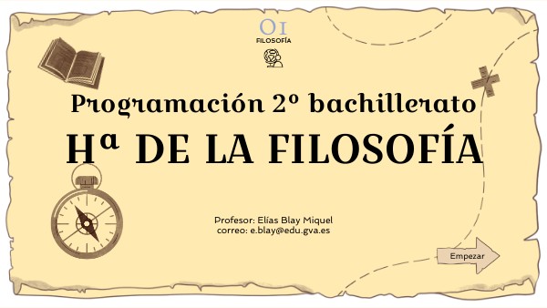 Bloque 1: Antigua. • Historicidad de los problemas y concepciones de la filosofía. • Cosmovisión mítica y explicación filosófica. • El problema de la realidad en los presocráticos. • Filosofía y ciudadanía en la Ilustración griega. Los sofistas y Sócrates. Aspasia de Mileto y el papel de la mujer en la cultura y la filosofía griega. • El debate político. Las propuestas platónica y aristotélica sobre el mejor orden social. • La antropología en la filosofía clásica. Sócrates y el conocimiento de sí. La psique en Platón y Aristóteles. • La discusión ética. El intelectualismo socrático-platónico; la teoría de las virtudes en Platón y el concepto de eudaimonía en Aristóteles. • De las polis al imperio. Filosofía, ciencia y cultura en el helenismo. Estoicismo y epicureismo.