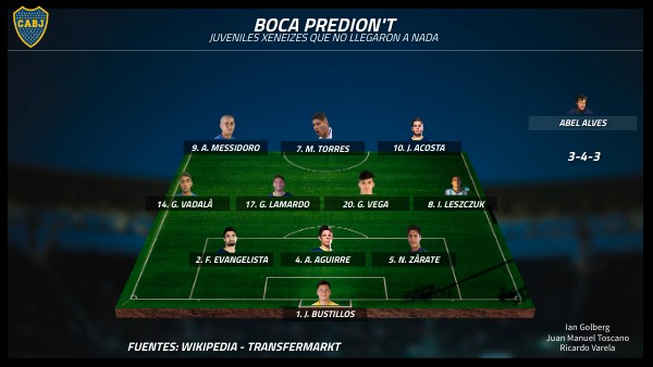 -Gonzalez Catán, Buenos Aires, 18/4/2002 Debutó en Boca de la mano de Sebastián Battaglia en aquel famoso encuentro entre la primera de Banfield y la reserva xeneize. Sólo 6 partidos con la azul y oro. Hoy juega cedido en Atlanta y poco a poco trata de asentarse en el Bohemio