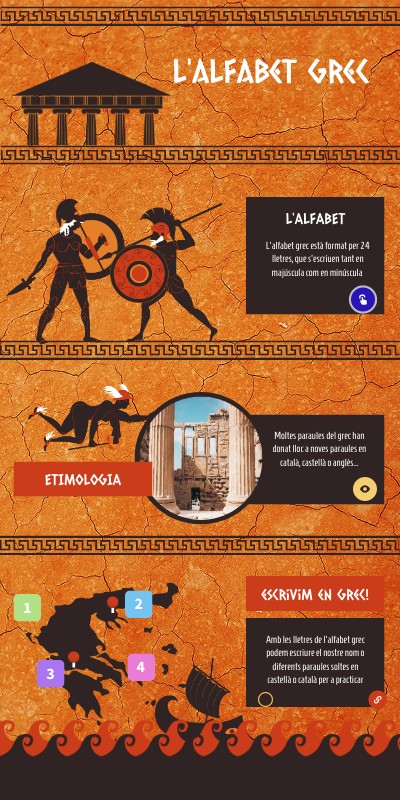Amb les lletres de l'alfabet grec podem escriure el nostre nom o diferents paraules soltes en castellà o català per a practicar