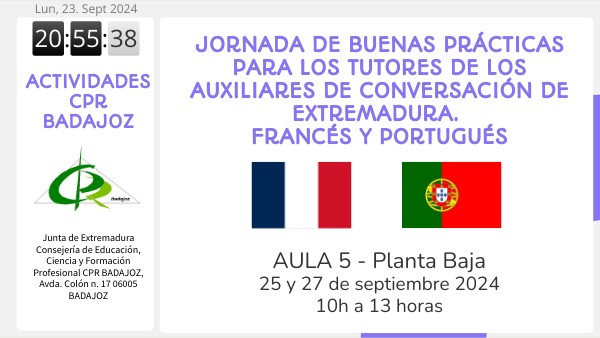 JORNADA DE BUENAS PRÁCTICAS PARA LOS TUTORES DE LOS AUXILIARES DE CONVERSACIÓN DE EXTREMADURA. FRANCÉS Y PORTUGUÉS