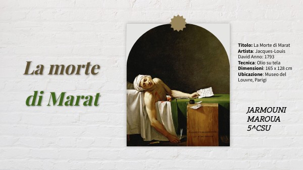 https://www.elledecor.com/it/arte/a40281857/la-morte-di-marat-un-tributo-alleroe-della-rivoluzione-francese/https://restaurars.altervista.org/dentro-lopera-la-morte-di-marat-di-jacques-louis-david/https://it.wikipedia.org/wiki/La_morte_di_Marat https://www.analisidellopera.it/la-morte-di-marat-di-jacques-louis-david/#google_vignette https://www.focus.it/cultura/arte/un-delitto-politico-nell-arte-la-morte-di-marat https://www.atlasorbis.it/la-morte-di-marat-una-scena-del-crimine-neoclassica/ https://www.pinterest.com/pin/88523948915803980/ Foto: pinterest e google immagini