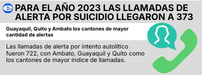 Las llamadas de alerta por intento autolítico fueron 722, con Ambato, Guayaquil y Quito como los cantones de mayor índice de llamadas.