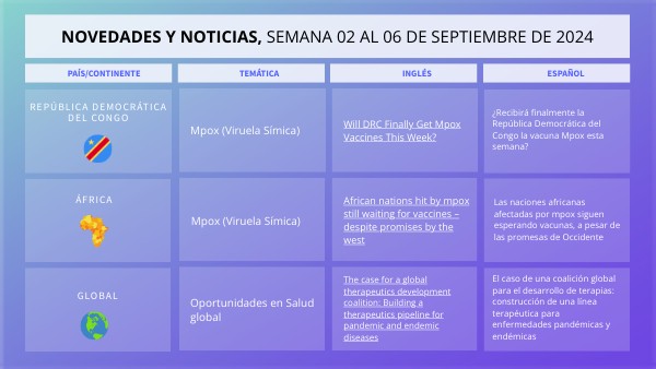 NOVEDADES Y NOTICIAS, SEMANA 02 al 06 de septiembre de 2024