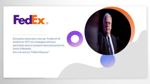 Entreprise américaine créer par Frederick W. Smithet en 1971 est compagnie aérienne spécialisée dans le transport international de fret, basée à Memphis.Son vrai nom est "Fédéral Express"