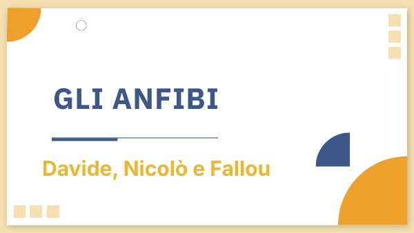 Gli anfibi sono animali vertebrati, hanno lo scheletro interno (endoscheletro). Il nome anfibio deriva dal greco e significa "doppia vita " perchè, molte specie, vivono sia in acqua sia sulla terraferma. Sono animali a sangue freddo, quindi eterotermi. Esistono 3 ordini diversi: gli APODI, privi di zampe come la cecilia; gli ANURI, privi di coda come i rospi; gli URODELI, che hanno la coda come le salamandre.