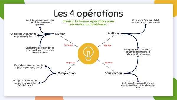 On lit dans l'énoncé : moitié, tiers, fois moins que, quotient.
