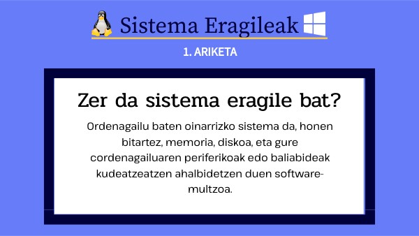 Ordenagailu baten oinarrizko sistema da, honen bitartez, memoria, diskoa, eta gure cordenagailuaren periferikoak edo baliabideak kudeatzeatzen ahalbidetzen duen software-multzoa.