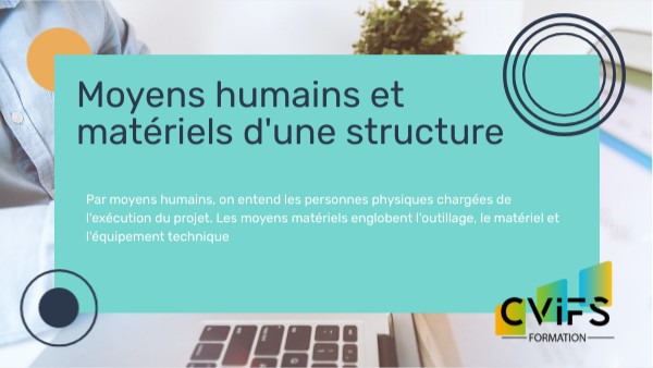 Par moyens humains, on entend les personnes physiques chargées de l'exécution du projet. Les moyens matériels englobent l'outillage, le matériel et l'équipement technique