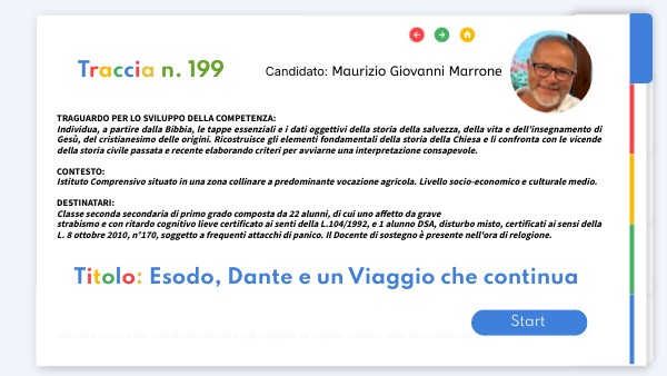 TRAGUARDO PER LO SVILUPPO DELLA COMPETENZA:Individua, a partire dalla Bibbia, le tappe essenziali e i dati oggettivi della storia della salvezza, della vita e dell’insegnamento di Gesù, del cristianesimo delle origini. Ricostruisce gli elementi fondamentali della storia della Chiesa e li confronta con le vicende della storia civile passata e recente elaborando criteri per avviarne una interpretazione consapevole. CONTESTO: Istituto Comprensivo situato in una zona collinare a predominante vocazione agricola. Livello socio-economico e culturale medio. DESTINATARI: Classe seconda secondaria di primo grado composta da 22 alunni, di cui uno affetto da grave strabismo e con ritardo cognitivo lieve certificato ai senti della L.104/1992, e 1 alunno DSA, disturbo misto, certificati ai sensi della L. 8 ottobre 2010, n°170, soggetto a frequenti attacchi di panico. Il Docente di sostegno è presente nell'ora di relogione.