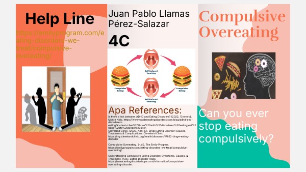Is there a link between ADHD and Eating Disorders? (2022, 13 enero). Monte Nido. https://www.waldeneatingdisorders.com/blog/adhd-and-disordered-eating/#:~:text=Like%20those%20with%20disordered%20eating,eat%20and%20to%20binge%20later. Cleveland Clinic. (2023, April 17). Binge Eating Disorder: Causes, Treatments & Complications. Cleveland Clinic. https://my.clevelandclinic.org/health/diseases/17652-binge-eating-disorder Compulsive Overeating. (n.d.). The Emily Program. https://emilyprogram.com/eating-disorders-we-treat/compulsive-overeating/ Understanding Compulsive Eating Disorder: Symptoms, Causes, & Treatment. (n.d.). Eating Disorder Hope. https://www.eatingdisorderhope.com/information/compulsive-overeating-disorder.