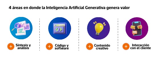 4 áreas en donde la Inteligencia Artificial Generativa genera valor