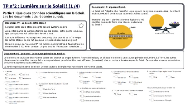Partie 1 : Quelques données scientifiques sur le Soleil. Lire les documents puis répondre au quiz.