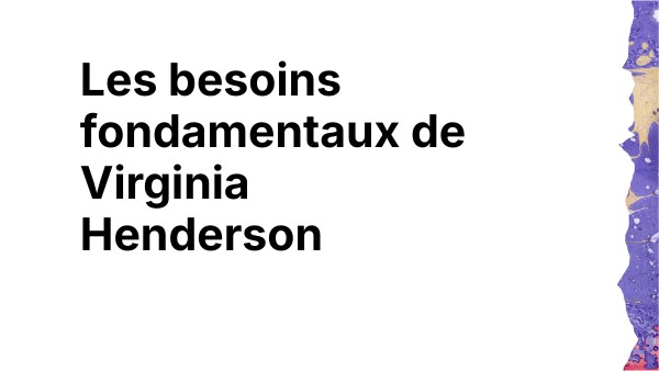 Les 14 besoins fondamentaux de V. Henderson sont utilisés comme étant la base conceptuelle des soins infirmiers.Satisfaire un ou plusieurs besoins a pour objectif de retrouver l'indépendance, maintenir ou restaurer la santé. Cela permet aux professionnels de santé d'identifier et mettre en oeuvre les actions appropriées si le besoin n'est pas satisfait.