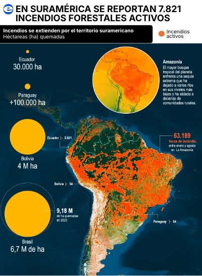 Incendios se extienden por el territorio suramericano Héctareas (ha) quemadas