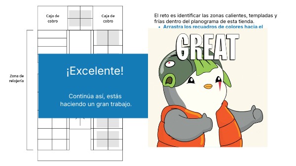El reto es identificar las zonas calientes, templadas y frías dentro del planograma de esta tienda.