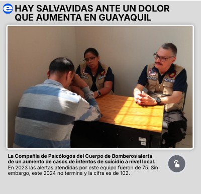 La Compañía de Psicólogos del Cuerpo de Bomberos alerta de un aumento de casos de intentos de suicidio a nivel local. En 2023 las alertas atendidas por este equipo fueron de 75. Sin embargo, este 2024 no termina y la cifra es de 102.