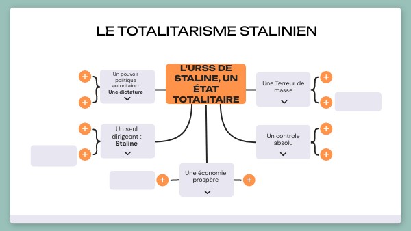 1. Une population encadrée : Propagande : Le régime utilise des médias et des communications contrôlés pour diffuser une vision officielle du monde, renforcer les idéologies du gouvernement. Cela vise à influencer et à contrôler les opinions et les comportements de la population. Culte de la personnalité : Le leader est présenté comme "le petit père des Peuples", indispensable à la nation. Cela renforce son autorité et son pouvoir, souvent au détriment de la vérité historique ou des critiques constructives. Organisation de la jeunesse : Les jeunes sont souvent intégrés dans des organisations gouvernementales pour les endoctriner dès leur jeune âge, les préparer à soutenir le régime et les isoler de l'influence d'opinions opposées. Ces organisations peuvent également servir de outils de surveillance.2. Une économie contrôlée : Plans quinquennaux : Le gouvernement établit des objectifs économiques pour des périodes de cinq ans, contrôlant la production, les ressources, et les priorités économiques. Ces plans visent à orienter l'économie selon les objectifs du régime, souvent avec peu de flexibilité et parfois avec des résultats inefficaces ou catastrophiques. Nationalisation des entreprises et des banques : Le régime prend le contrôle des secteurs économiques clés, y compris les entreprises privées et les institutions financières. Cela vise à centraliser le pouvoir économique et à empêcher toute opposition économique indépendante. Collectivisation des terres : Les terres agricoles sont regroupées en grandes exploitations collectives ou étatiques. Cela élimine la propriété privée de la terre et vise à améliorer l'efficacité de la production agricole, bien que dans de nombreux cas, cela ait conduit à des inefficacités et à des famines ( kolkhozes).
