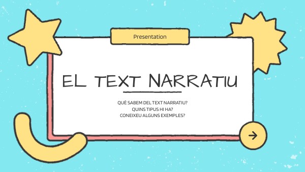- Expliquen unes accions o uns fets, que poden ser reals o imaginaris, en un temps i en un espai determinats. Aquests fets estan relacionats entre si i constitueixen una història. - Parts: Plantejament, nus i desenllaç. (també tenen Títol) - Poden ser de tipus realista o fantàstic. - Narrador en 1a o 3a persona.