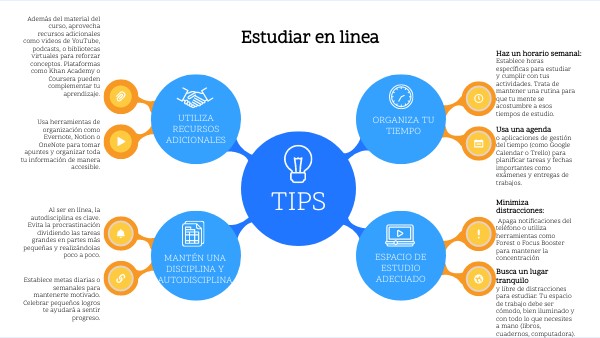 Además del material del curso, aprovecha recursos adicionales como videos de YouTube, podcasts, o bibliotecas virtuales para reforzar conceptos. Plataformas como Khan Academy o Coursera pueden complementar tu aprendizaje.