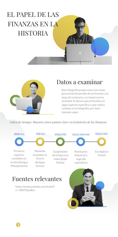 Esta infografía proporciona una visión general del desarrollo de las finanzas a lo largo de la historia y su impacto en la sociedad. Si deseas que profundice en algún aspecto específico o que realice cambios en la infografía, por favor házmelo saber.