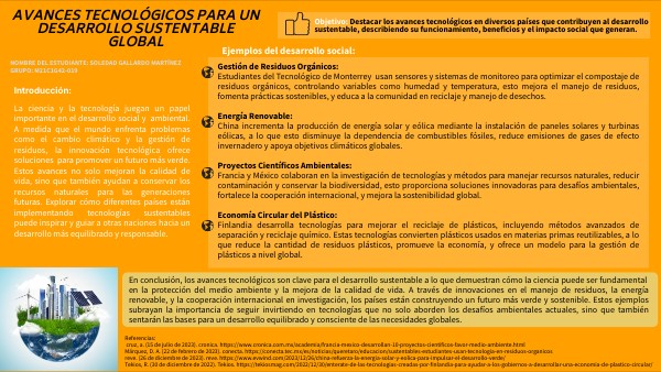 Objetivo: Destacar los avances tecnológicos en diversos países que contribuyen al desarrollo sustentable, describiendo su funcionamiento, beneficios y el impacto social que generan.