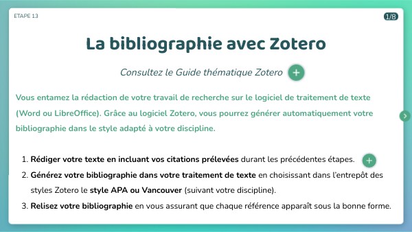 Consultez le Guide thématique Zotero