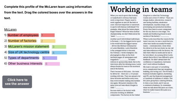 Complete this profile of the McLaren team using information from the text. Drag the colored boxes over the answers in the text. McLaren