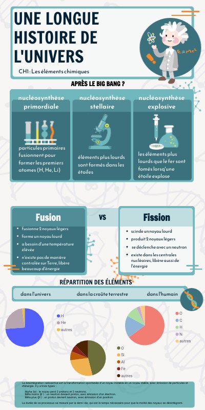 La désintégration radioactive est la transformation spontanée d’un noyau instable en un noyau stable, avec émission de particules et d’énergie. Il y a trois types : Alpha (α) : le noyau perd 2 protons et 2 neutrons. Bêta moins (β⁻) : un neutron devient proton, avec émission d’un électron. Bêta plus (β⁺) : un proton devient neutron, avec émission d’un positron.La durée de ce processus se mesure par la demi-vie, qui est le temps nécessaire pour que la moitié des noyaux se désintègrent.