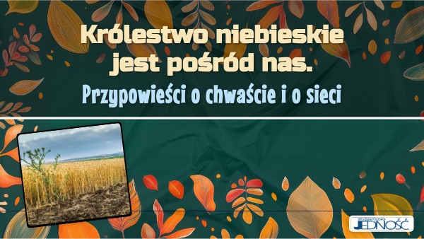 Królestwo niebieskie podobne jest do człowieka, który posiał dobre nasienie na swojej roli. Lecz gdy ludzie spali, przyszedł jego nieprzyjaciel, nasiał chwastu między pszenicę i odszedł. A gdy zboże wyrosło i wypuściło kłosy, wtedy pojawił się i chwast. Słudzy gospodarza przyszli i zapytali go: „Panie, czy nie posiałeś dobrego nasienia na swej roli? Skąd więc wziął się na niej chwast?” Odpowiedział im: „Nieprzyjazny człowiek to sprawił”. Rzekli mu słudzy: „Chcesz więc, żebyśmy poszli i zebrali go?” A on im odrzekł: „Nie, byście zbierając chwast, nie wyrwali razem z nim i pszenicy. Pozwólcie obojgu róść aż do żniwa; a w czasie żniwa powiem żeńcom: «Zbierzcie najpierw chwast i powiążcie go w snopki na spalenie; pszenicę zaś zwieźcie do mego spichlerza»”. (Mt 13,24-30)