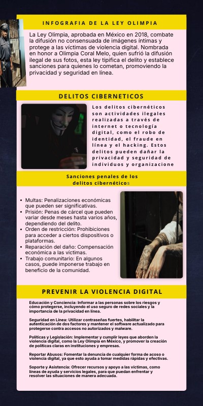 La Ley Olimpia, aprobada en México en 2018, combate la difusión no consensuada de imágenes íntimas y protege a las víctimas de violencia digital. Nombrada en honor a Olimpia Coral Melo, quien sufrió la difusión ilegal de sus fotos, esta ley tipifica el delito y establece sanciones para quienes lo cometan, promoviendo la privacidad y seguridad en línea.